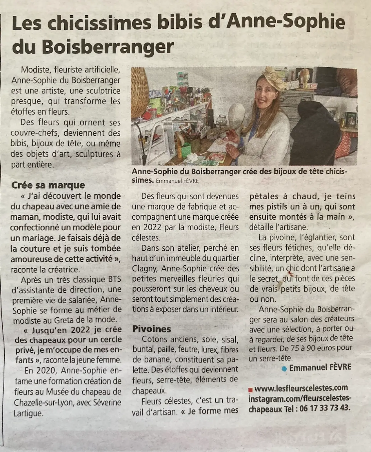 Le journaliste Emmanuel Fèvre a écrit un article enthousiasmant. Il a été fasciné par mon univers et pris du temps pour comprendre mon métier et ma passion.