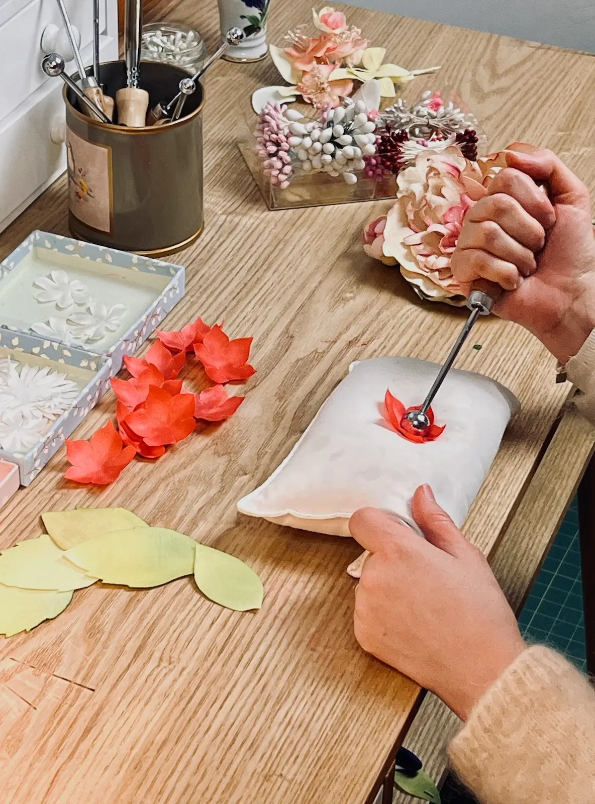 Bouler pour donner courbe et rondeur, gaufrer le tissu et voir les pétales prendre vie