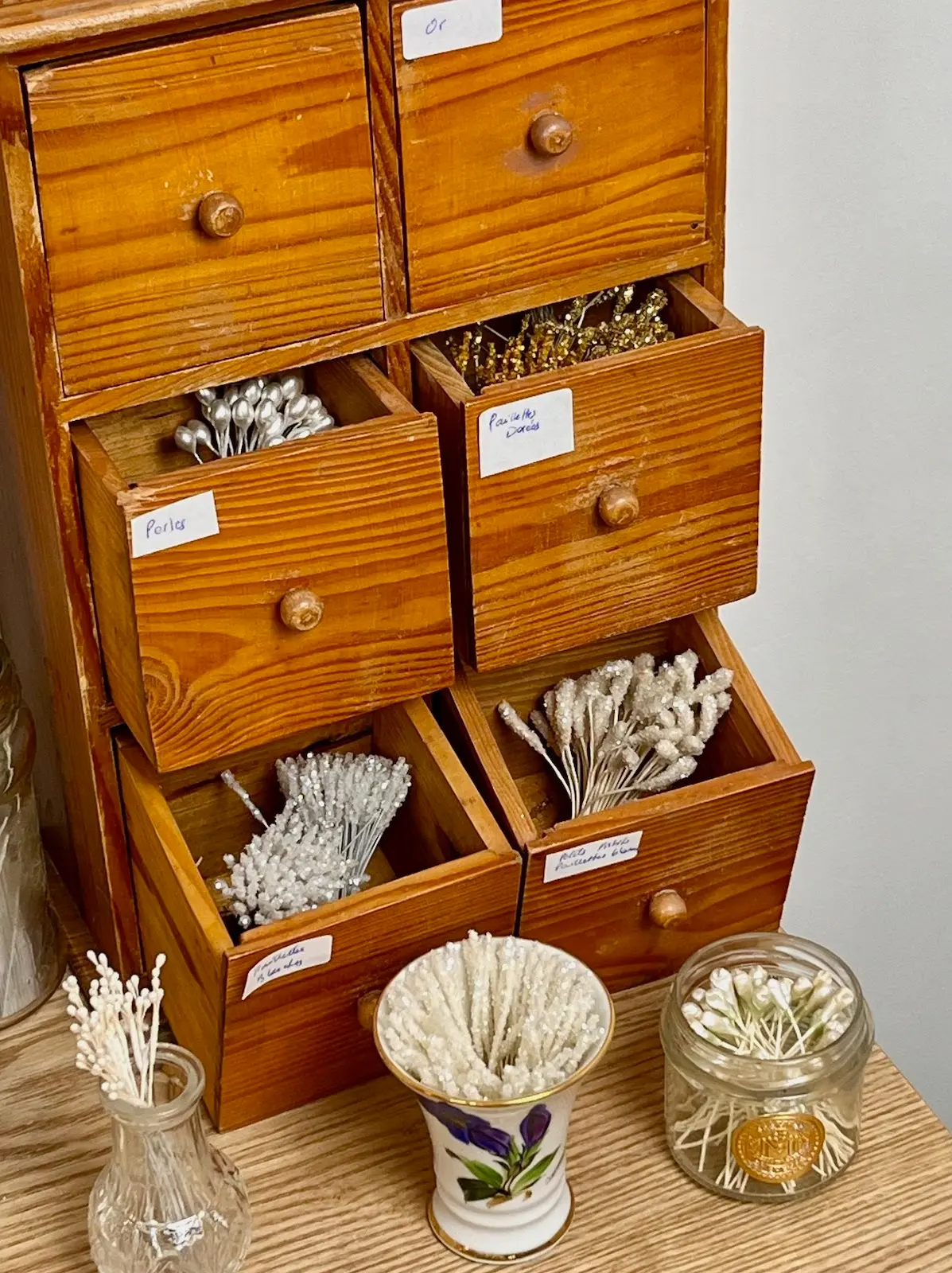 Que ce soit en peigne, en coeur de fleur,  en agrément de chapeau, ces petits trésors apportent de délicates touches de finesse.