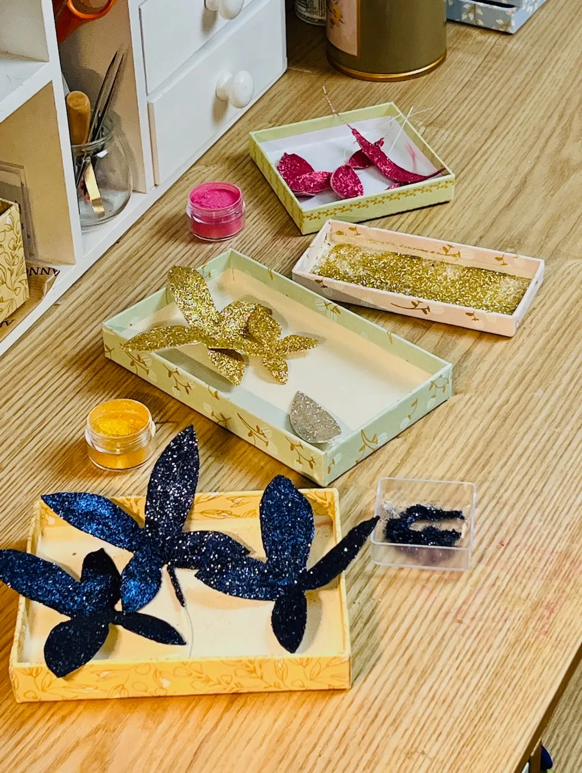 Papillons de nuits étoilées, pétales scintillants, paillettes d'or ou d'argent...